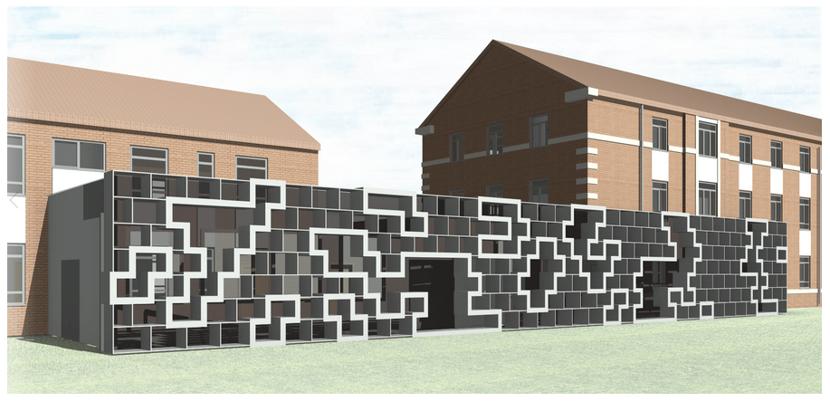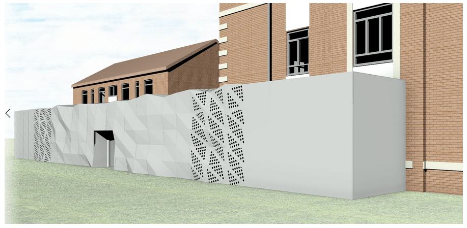 This is another example of a project where we used Dynamo during the conceptual design stage. The brief of this project was to create a low-level linking building. The two brick buildings at either side of the images below are existing buildings on the site. The long and low building connecting the two brick buildings is the design proposal.