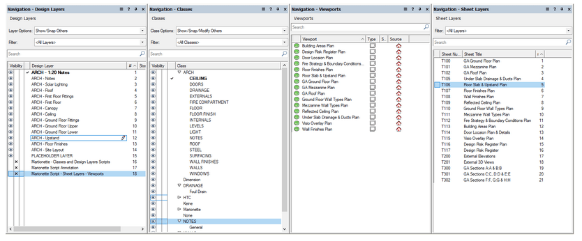 The results of these scripts are that you have quickly and easily create all the needed classes, design layers and sheet layers. It has also generated a few of the plan viewports and placed them on the sheet layers. Below is a link to the Marionette script used in this article. These scripts can be turned into Marionette Menu Commands.