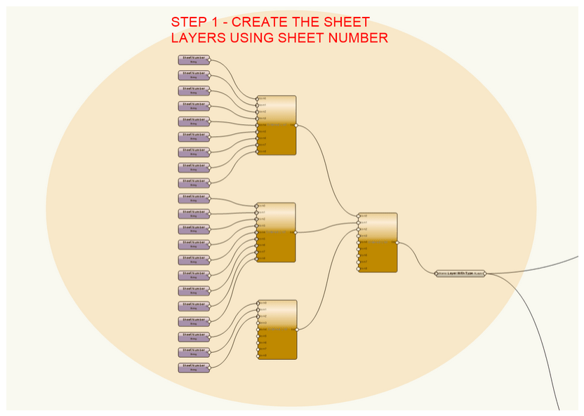Step 1 – The key node here is the grey node ‘Layer With Type’ which creates Design or Sheet layers when given a string for the number of the sheet layer.