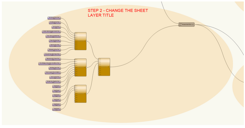 Step 2 – This step changes the Sheet Layer Title. The key node is the grey node ‘Change Sheet Title’.