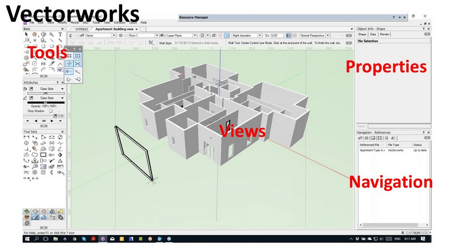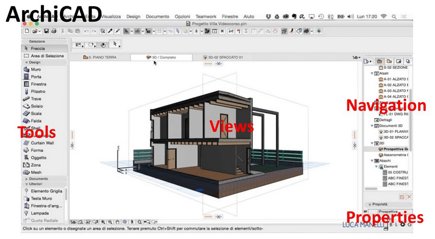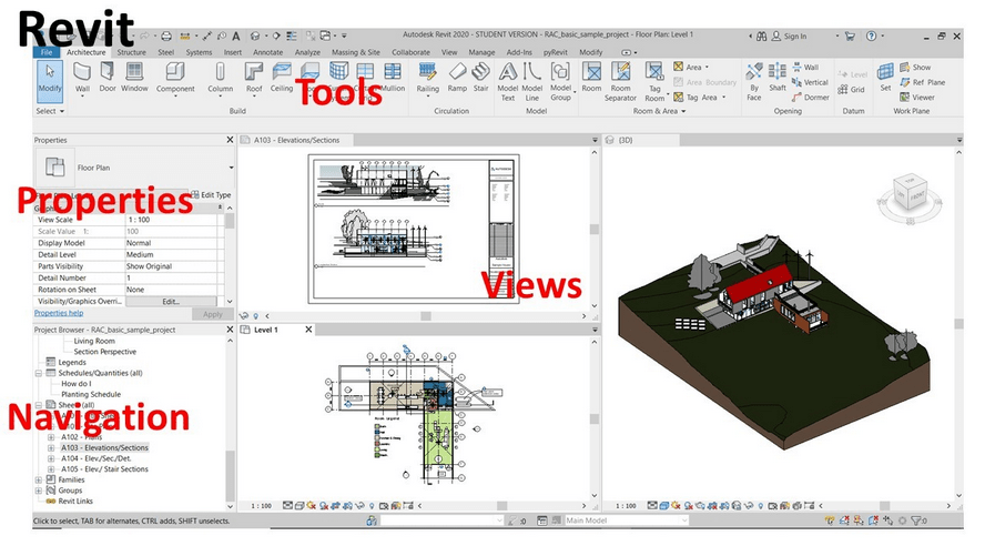 To be able to create these ‘data rich 3D models’ we need BIM authoring software. There are many products out there which I have tried to list below. But there is an important concept to be aware of and that is there are now second generation BIM authoring tools. I have listed them below too. I have tried to highlight the common or shared parts of the user interfaces of different BIM authoring tools (see the red text).