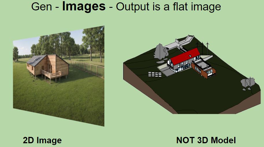 AI image generators are great for inspiration but they can not produce 3D outputs, they can not solve detailing problems, develop novel strategies for passively lighting and cooling buildings or planning of spaces problems.